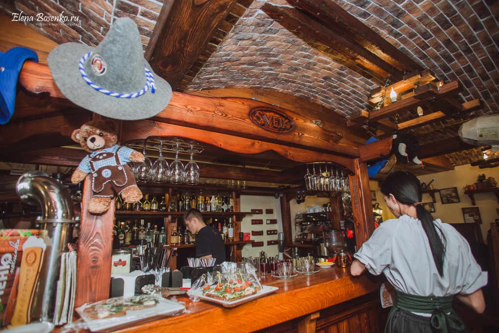 Стильное место для приятного общения – это пивной ресторан «Швейк». Удобное расположение в центре Волгограда, тихая обстановка, широкий выбор блюд традиционной чешской и европейской кухни. «Швейк» идеально подходит для людей с тонким вкусом к жизни и отдыху. Атмосферу тепла и уюта создает мягкий свет, массивная деревянная мебель с фирменным логотипом. Оригинальность интерьеру добавляют макеты самолетов под потолком и большой аквариум с живыми раками в холле. Своим гостям «Швейк» предлагает три вместительных зала для дружеского общения, деловых встреч, романтических свиданий и семейных торжеств. А для спортивных болельщиков есть отдельный зал с большим экраном, где просмотр спортивных трансляций отлично сочетается с кружкой настоящего чешского пива. В «Швейке» можно не только весело отдохнуть вечером, но и хорошо покушать днем. Здесь вам предложат угощения на любой вкус: фирменную рульку с золотистой корочкой, домашние колбаски собственного приготовления, утку с капустой. Блюда традиционной чешской и европейской кухни никого не оставят равнодушным. Острая куриная соломка в хрустящей золотистой панировке, тигровые креветки в кляре, жареные картофельные палочки с беконом, шейки куриные жареные с острым соусом табаско. Каждое блюдо заслуживает отдельного внимания. Меню «Швейка» также изобилует выбором горячих закусок к пиву. Швартские вареники — эксклюзивное предложение от шеф-повара. Богатая винная карта ресторана также предлагает широкий выбор разнообразных напитков. В «Швейке» всегда можно заказать различные блюда с собой. В теплое время года для гостей ресторана открыта просторная летняя терраса. Здесь все продумано для комфорта посетителей: удобная мебель из натурального дерева, система охлаждения, стильные гардины. Непринужденный отдых на свежем воздухе дополняют легкая музыка, плазменные телевизоры и свободный Wi-Fi. Безупречный сервис, авторские блюда, неповторимая атмосфера Чехии – «Швейк» к вашим услугам!